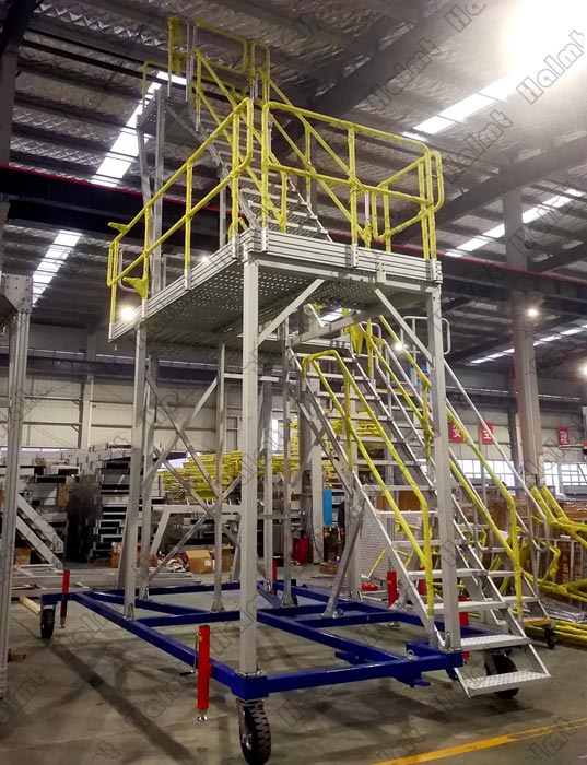 安全:產(chǎn)品設(shè)計符合EN ISO 14122和MH/T 3012.17-2010 相關(guān)標(biāo)準(zhǔn),高強(qiáng)度鋁型材結(jié)構(gòu),安全門,防滑踏步,首末臺階安全警示條等;