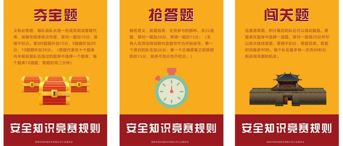 安全生產(chǎn)知識競賽的內(nèi)容包含生產(chǎn)安全、消防安全、交通安全、食品安全等方面,覆蓋公司各個崗位的安全注意事項。為了增強競賽的參與度和趣味性,我們設(shè)置了必答題、搶答題和闖關(guān)題。