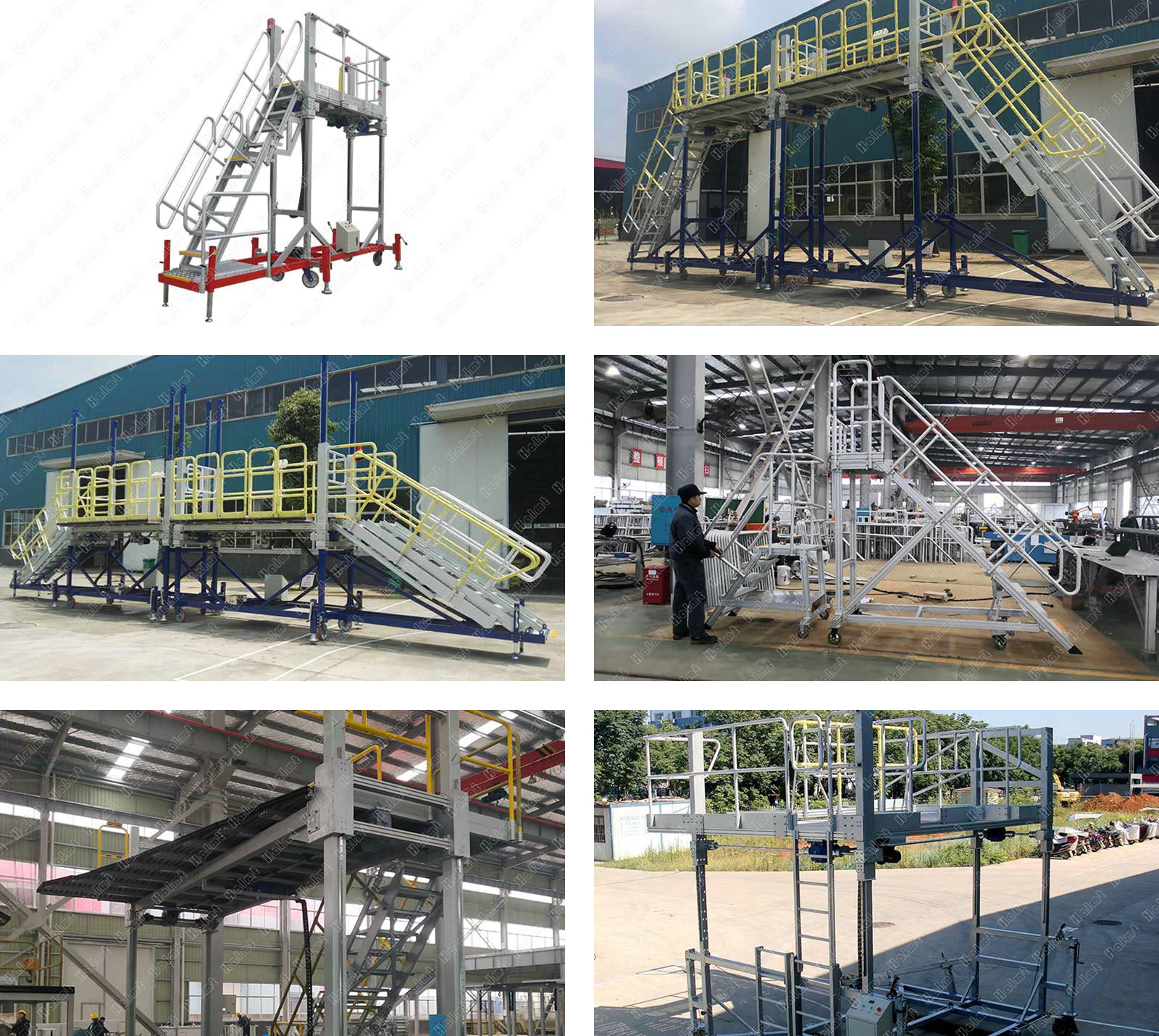 鋁機(jī)械移動(dòng)升降平臺(tái)梯,為保證裝配和維修過(guò)程中的便利性、特殊性要求,可選手動(dòng)、電動(dòng)控制。