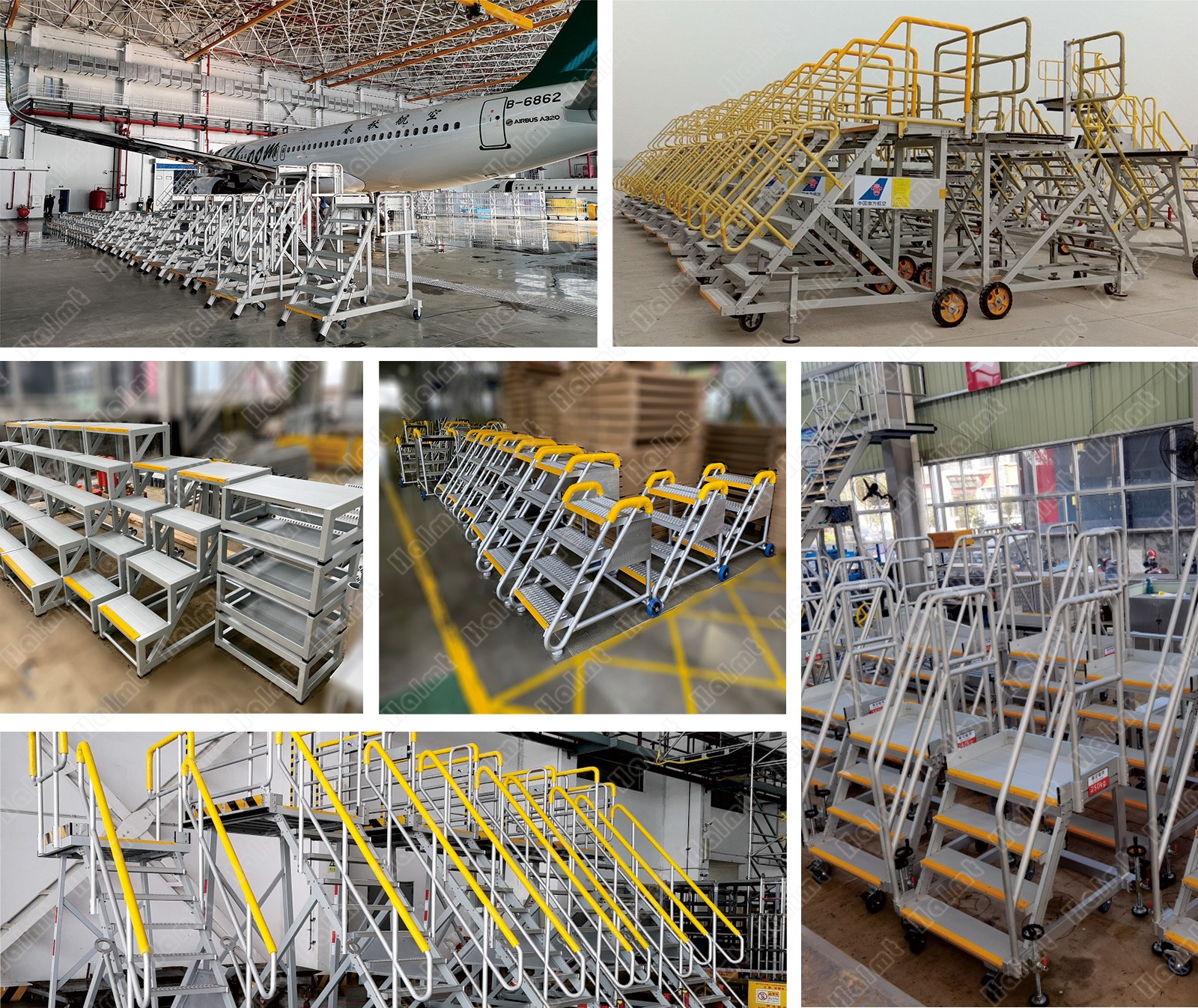 飛機(jī)特殊維修梯,主要用于飛機(jī)引擎罩下等特殊位置的維修和裝配,實現(xiàn)特殊位置的作業(yè)要求。